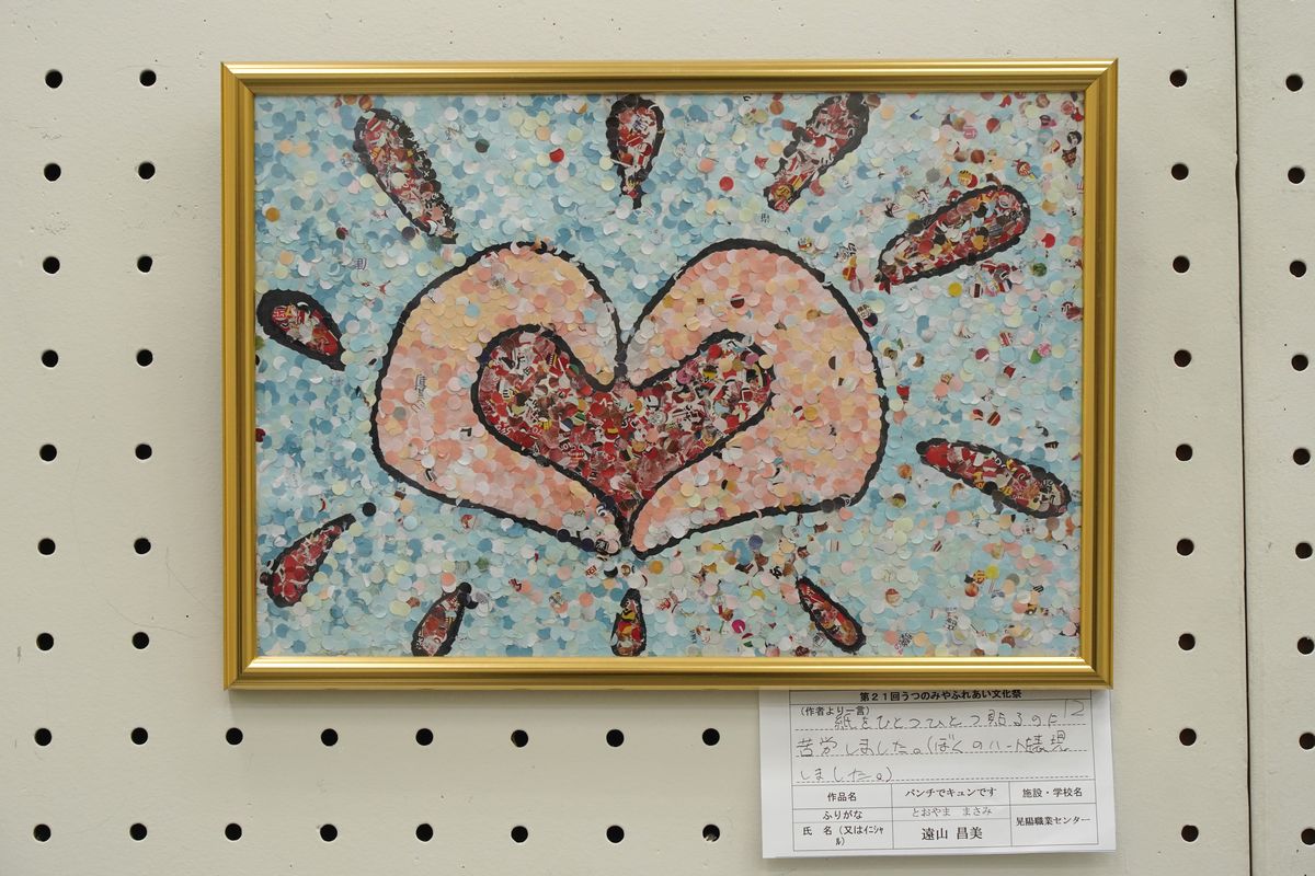 紙をひとつひとつ貼るのに苦労しました。(ぼくのハートを表現しました)